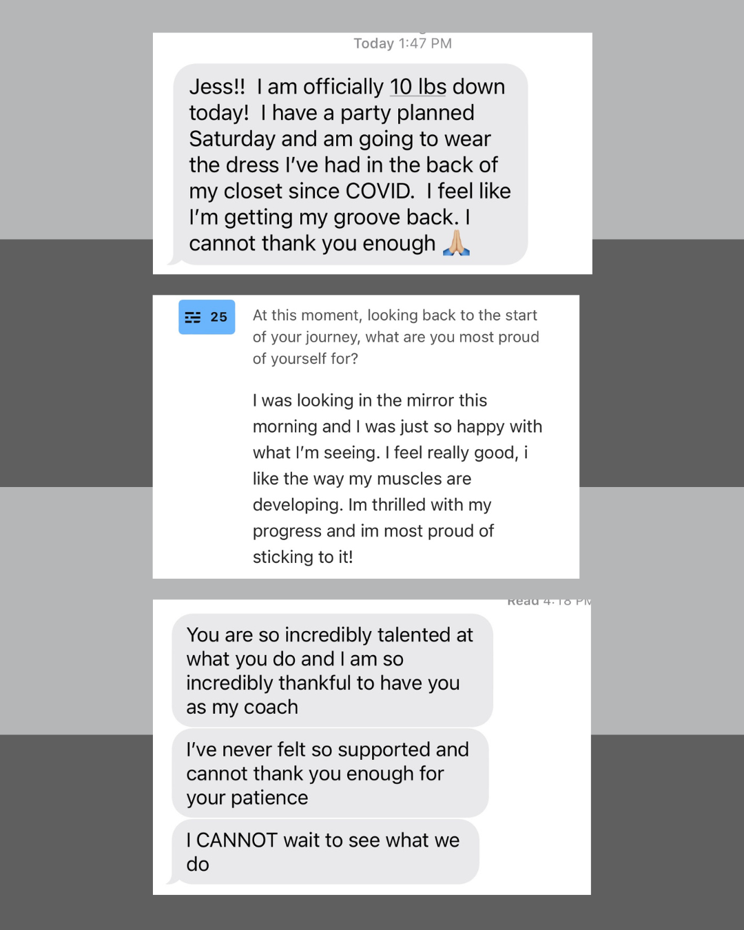 “over the course of a year, my goals evolved. i recommend her to everyone and i finally convinced my husband to start hitting his fitness goals as well.”